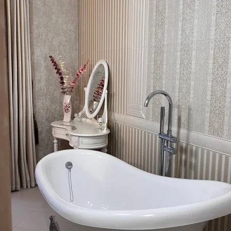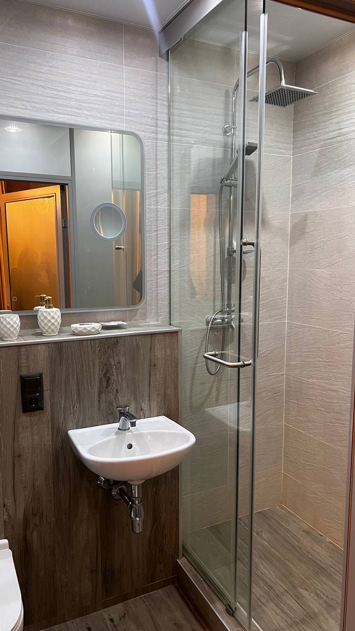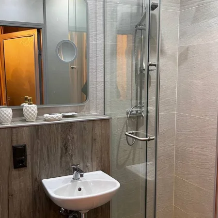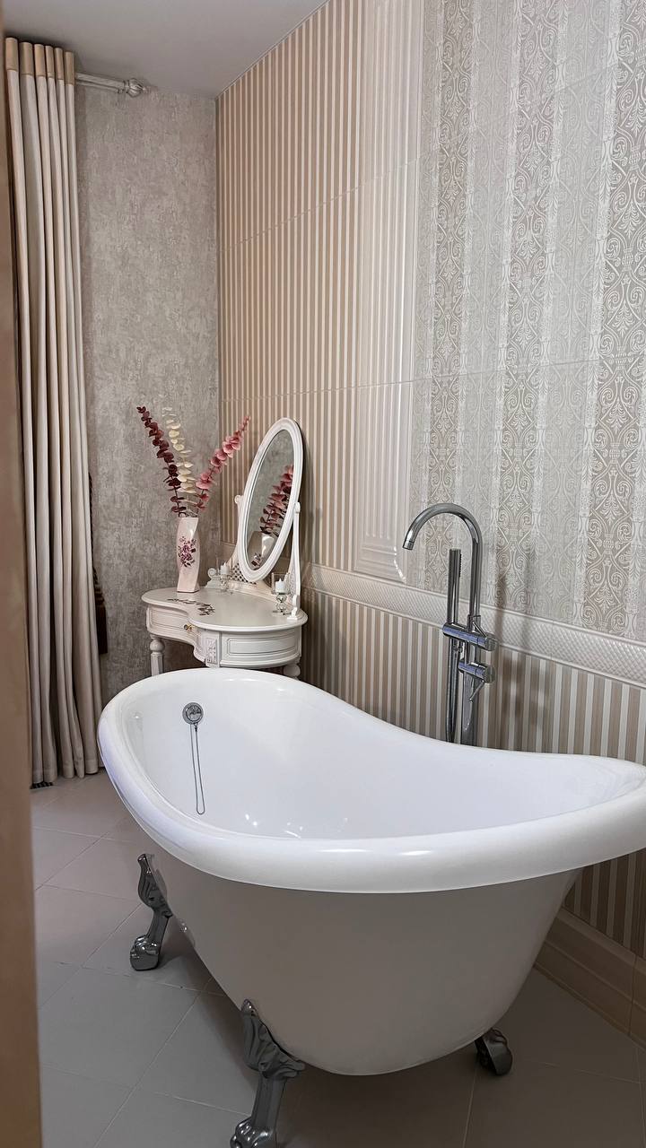 - Гигиена: 1 санузел (душевая), ванна, гигиенический набор комплиментарно (шампунь, кондиционер, зубная щётка, зубная паста, гель для душа, мыло, набор ниток) - единожды на заезд, фен, набор полотенец, тапочки, халат